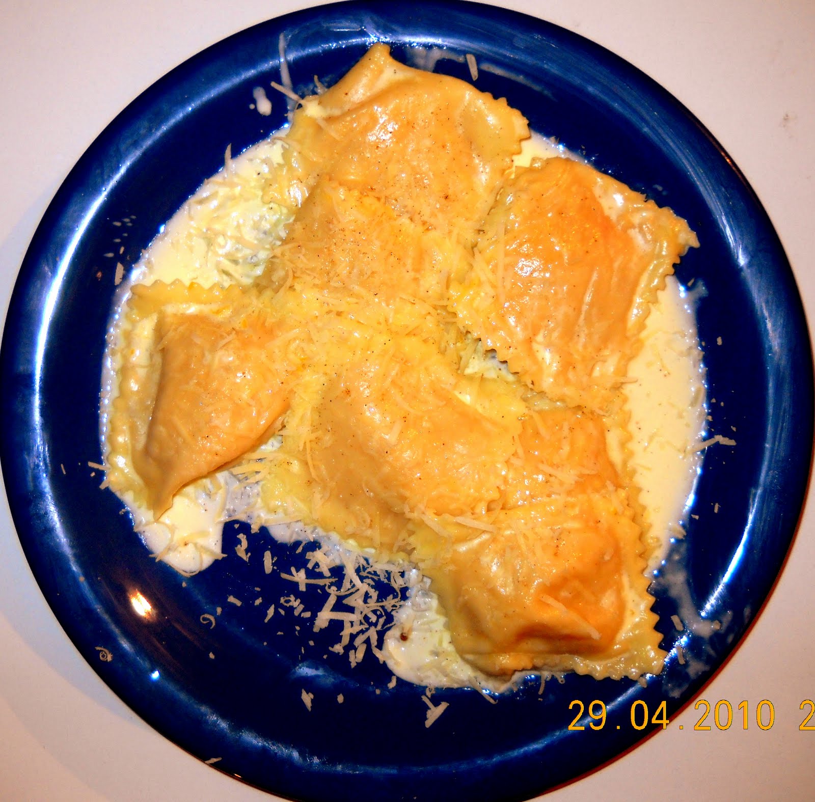 Pelar la calabaza, cortarla en cubos y cocerla en microondas por 10′ a temperatura máxima; salpimentar y mezclar la mostaza de dijon (tiene que ser buena!!), el parmesano y una pizca de nuez moscada.