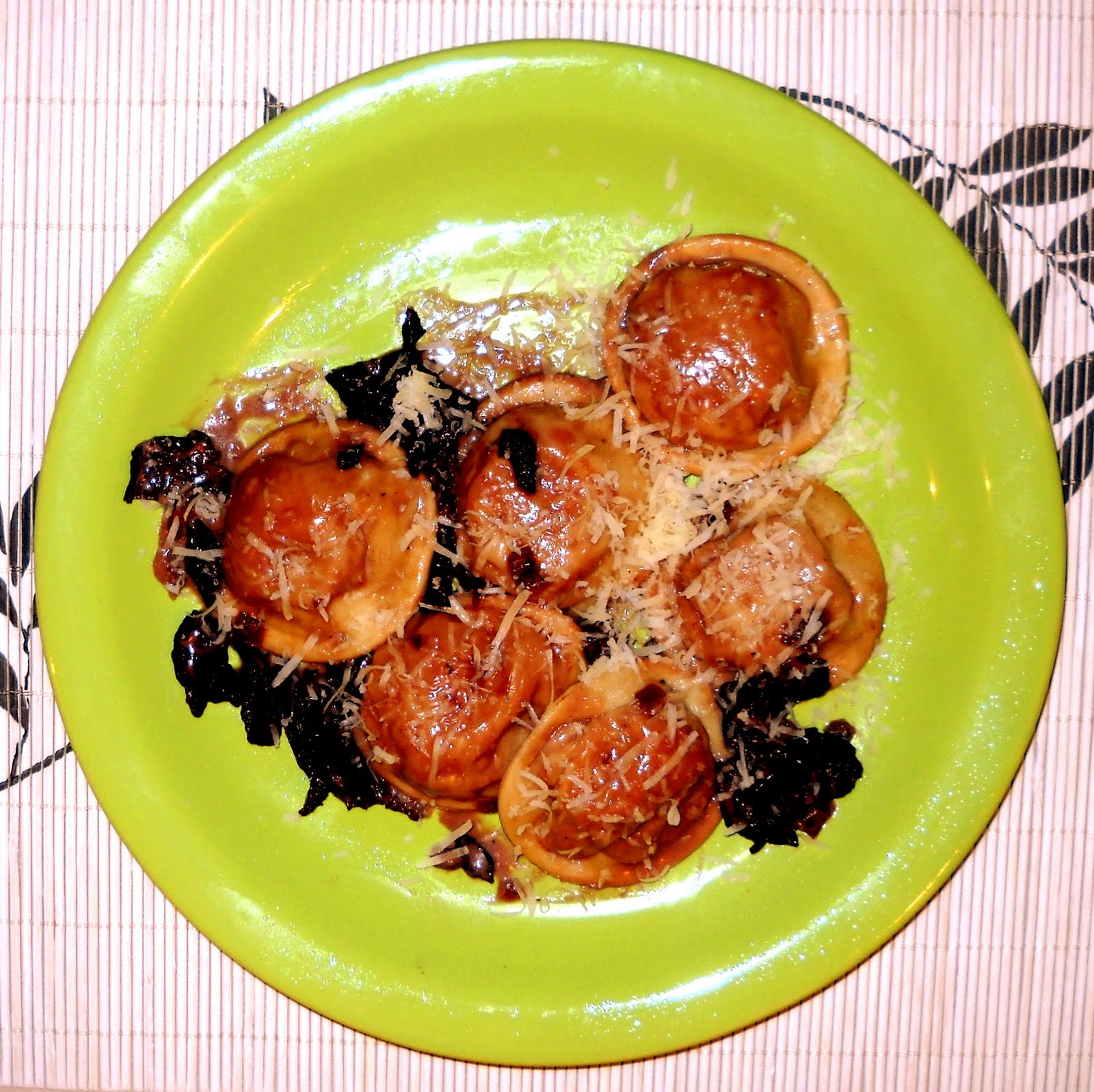 Tuve un poco de miedo al preparar este plato porque no estaba seguro cómo combinaría el dulzor de la calabaza con la intensidad de sabor de las setas al vino tinto (buenísimas para salsear una carne) pero resultó un acierto, salió un plato delicado, muy sabroso y lleno justamente de contrastes.