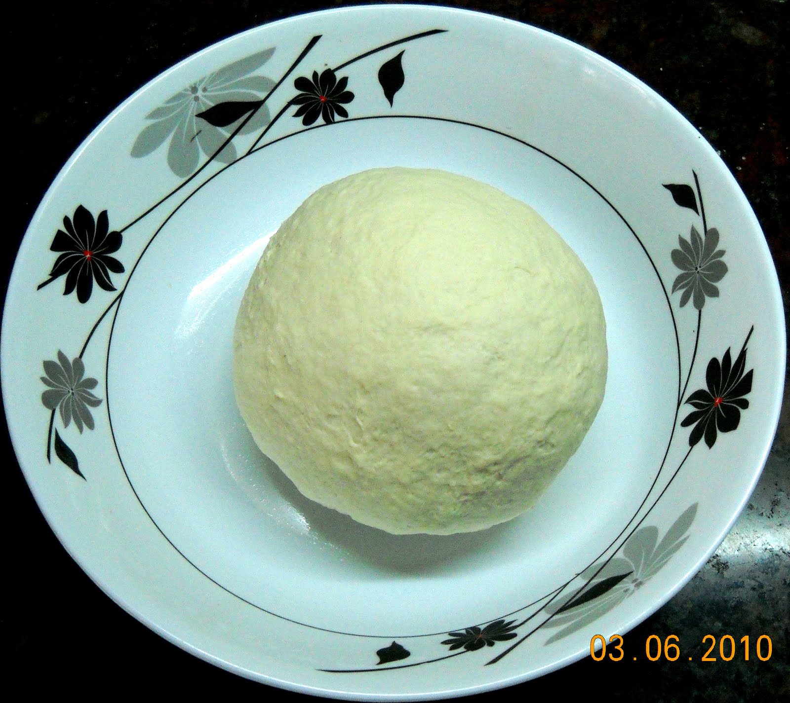 1* PASO: Tomamos un kg de harina, 550 – 600 g de agua y 20 g de sal y hacemos una masa; damos forma de bollo, dejamos reposar unos minutos y luego cubrimos con agua fría en un recipiente por otros 45’.