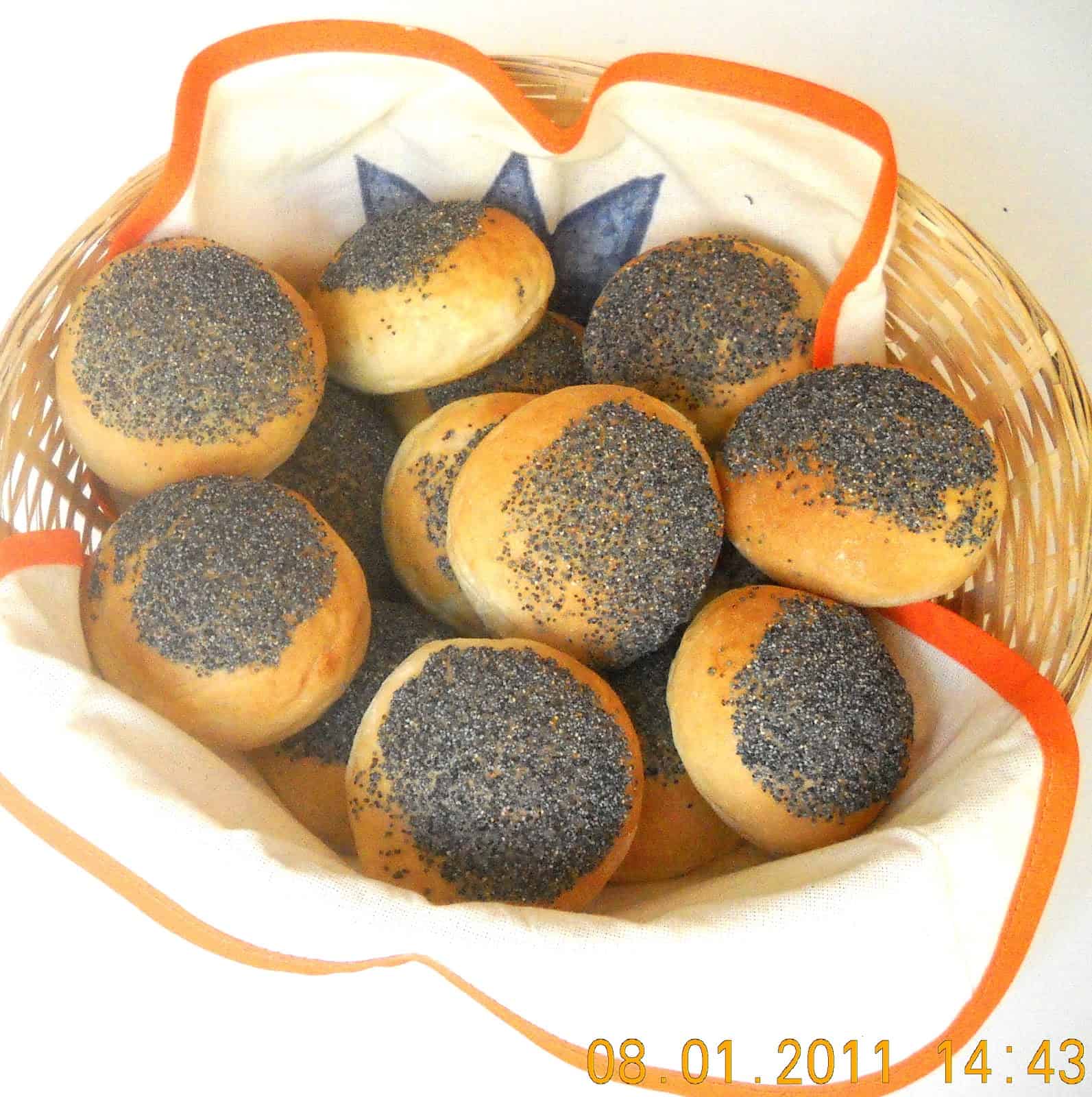 Las semillas de amapola le dan a los panes un sabor muy rico, además de esa linda sensación que nos queda al sentir que vamos rompiendo las delicadas y sabrosas semillitas; son además las que más fácil quedan adheridas a la masa por lo cual, si bien un poco caras, tienen muy poco desperdicio. Para unos 15 panecillos de 55 gs c/u: