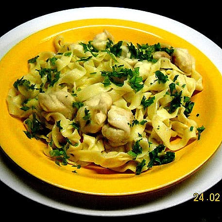 TALLARINES CASEROS CON CACHETES DE ABADEJO, AJO Y JENGIBRE