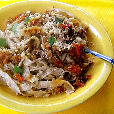 En cuanto a la salsa bolognesa, además de emplear la soja texuturizada en lugar de carne, no es tampoco “tradicional” en cuanto al resto de los ingredientes empleados, los cambios dependen de gustos personales y, además y no menos importante, de los ingredientes disponibles al momento de comenzar a cocinar…