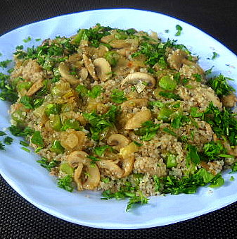 Me regalaron una caja de “Kasha”: trigo sarraceno partido y tostado, muy popular en Rusia. La receta que presento es bastante sencilla y rápida de preparar, si alguien quiere intentarlo es posible que se sorprenda gratamente por los resultados. Para dos personas: