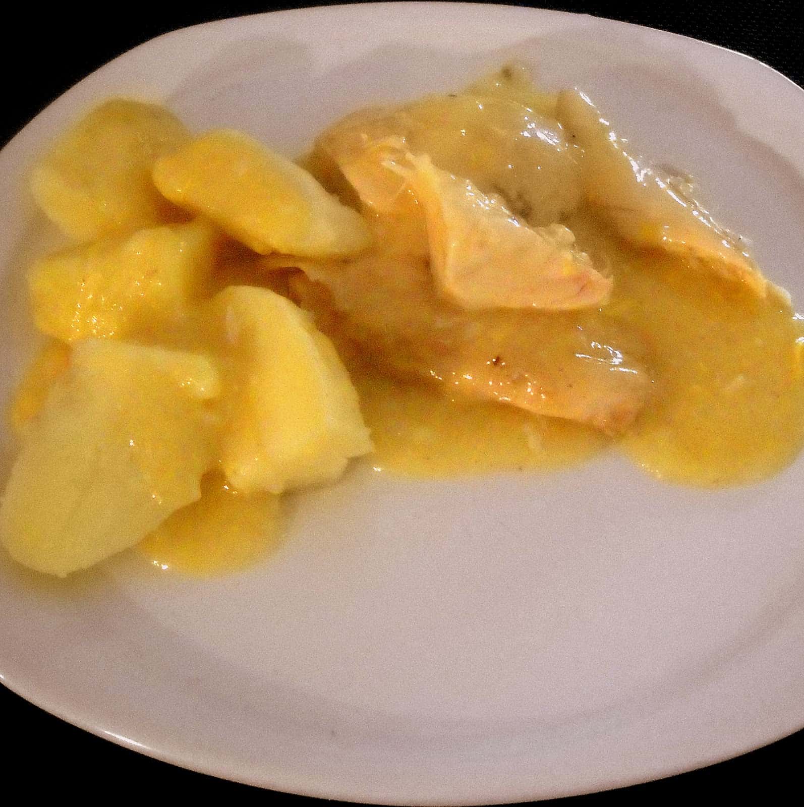 Volvemos a calentar y servimos acompañado de las papas hervidas y troceadas.