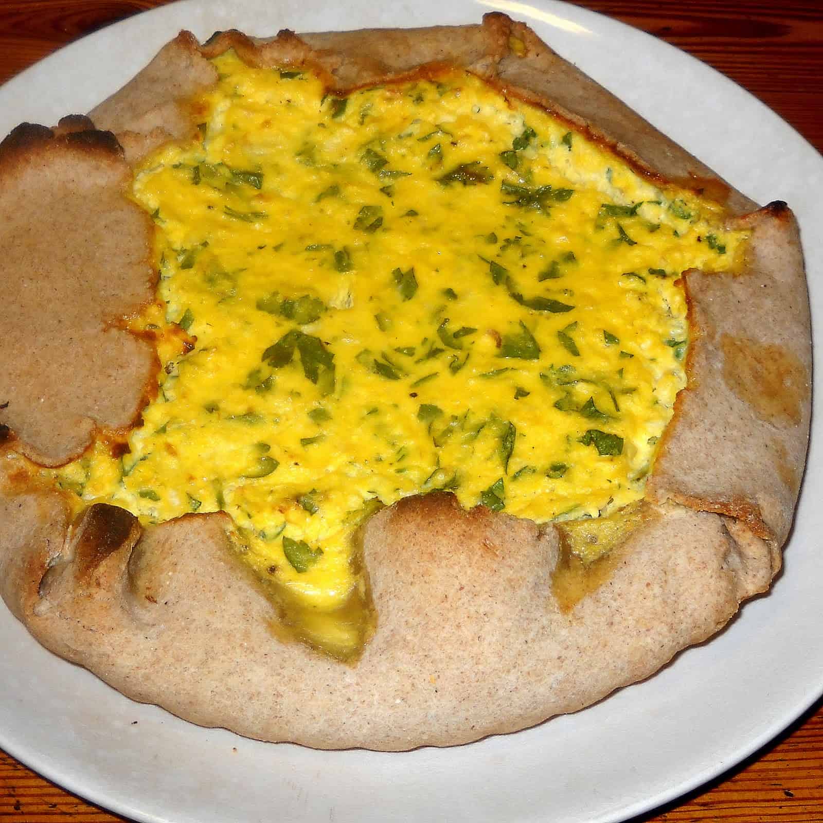 volcamos dentro la mezcla; espolvoreamos con parmesano, si lo deseamos (yo no lo hice…) y cortamos la masa remanente o la recostamos sobre el relleno (fue lo que hice).