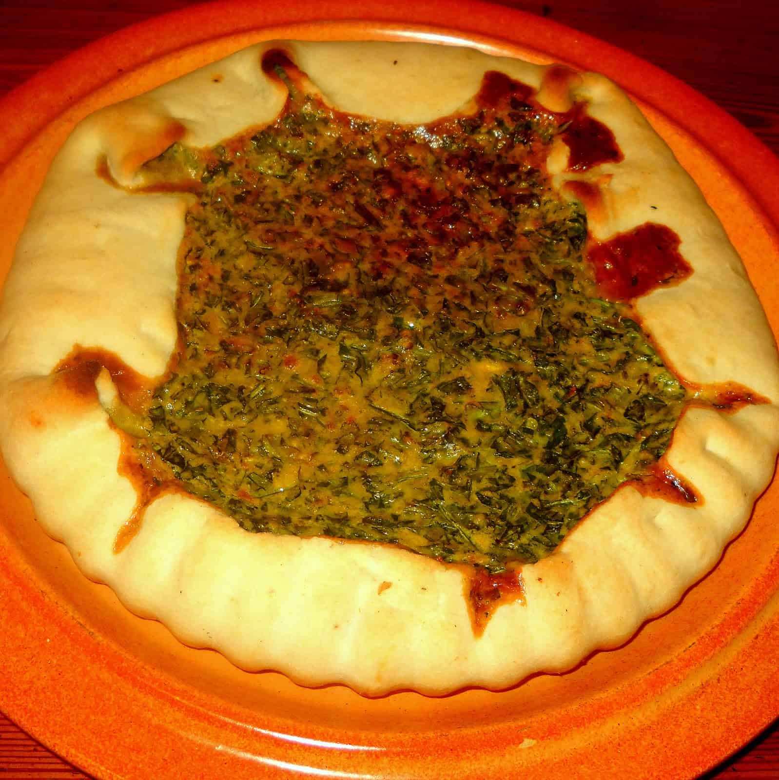 Una sencilla y sabrosa tarta, con un sabor intenso y característico. Para 2 a 4 personas según sea o no único plato, en una tartera de unos 25 cms de diámetro: