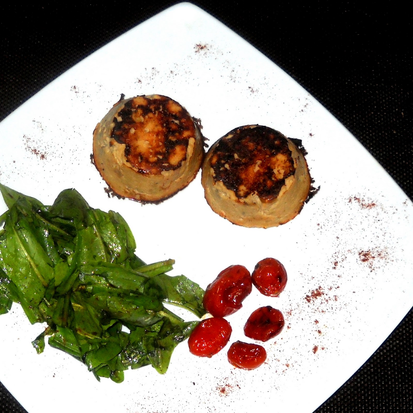 Servimos acompañado con ensalada de verdes y tomates cherries confitados. (Para confitar los tomates los rociamos con un poco de aceite de oliva, salpimentamos, floreamos con azúcar (también podemos adicionarle ajo o algunos aromáticos) y cocinamos a horno muy suave hasta que comiencen a caramelizarse, entre 60´ y 90´.
