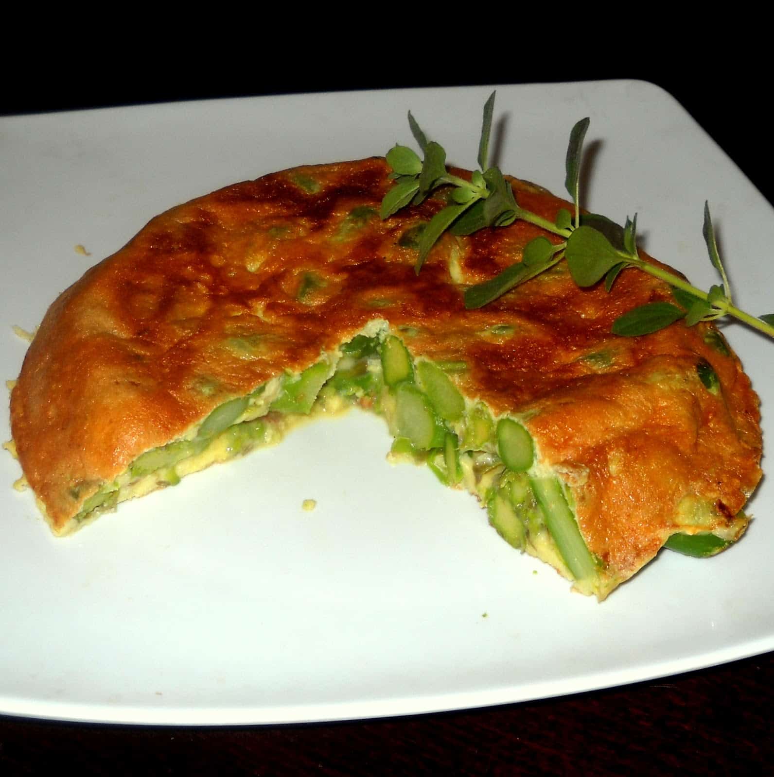 Batimos los huevos, mezclamos con los espárragos y volcamos sobre una sartén mediana precalentada y con un chorrito de aceite.