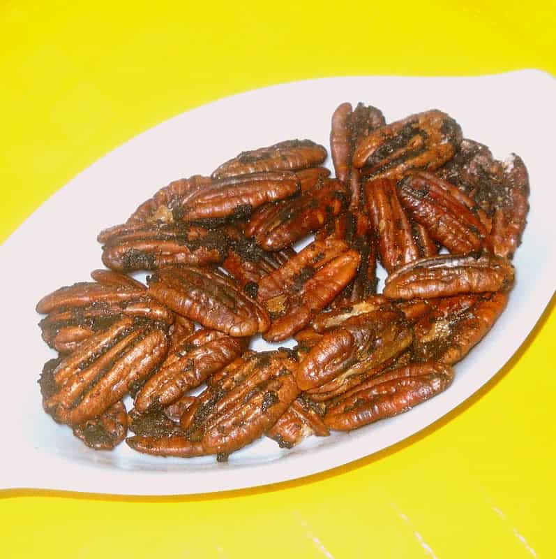 Distribuímos las pecán sobre una asadera de teflón (o una común con papel para horno), salamos ligeramente y horneamos en horno medio (180*) hasta que se hayan tornado crocantes y fragantes, unos 10`.