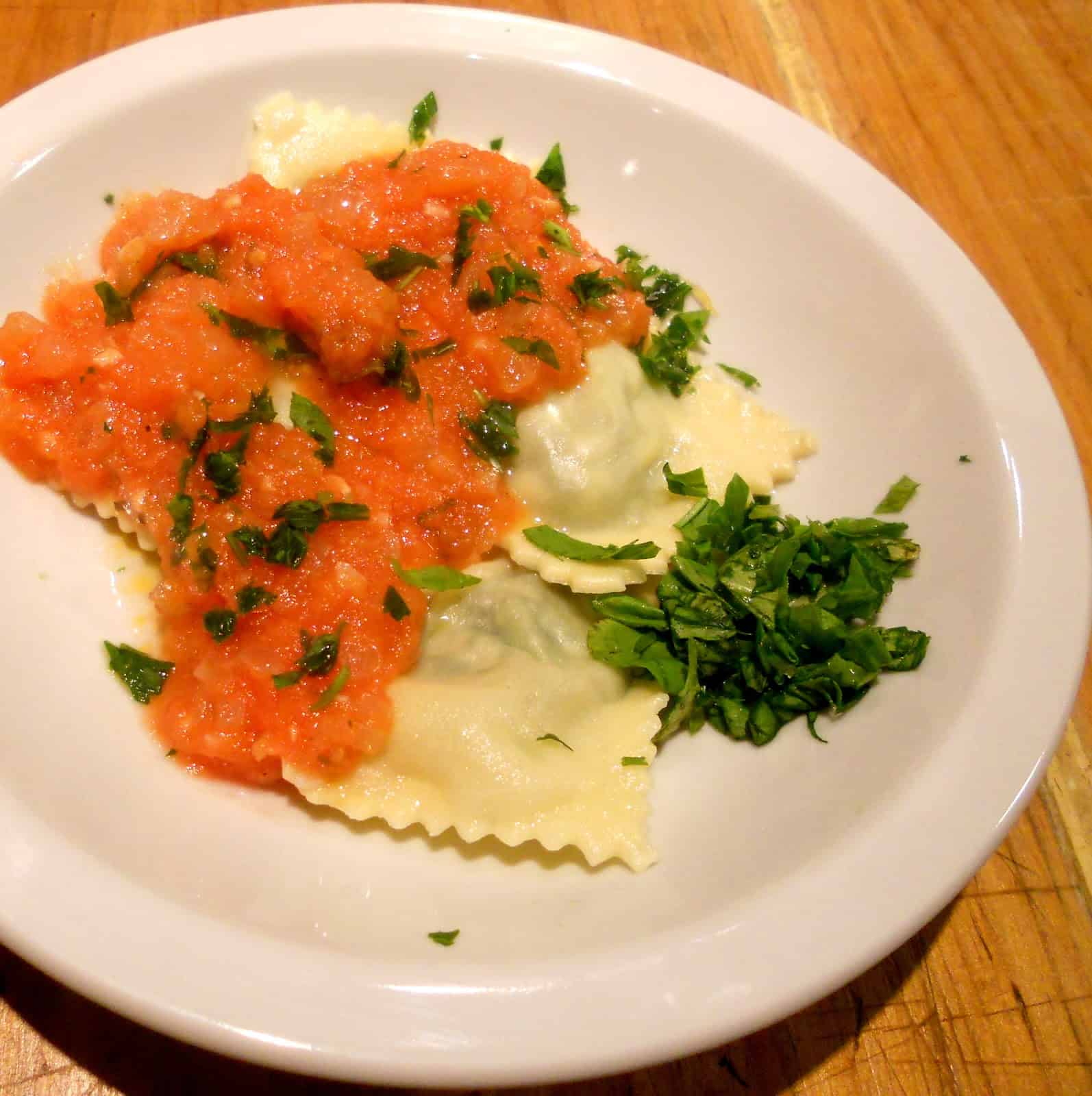– RAVIOLES DE RÚCULA Y MUZZARELLA CON SALSA DE TOMATE Y SALVIA