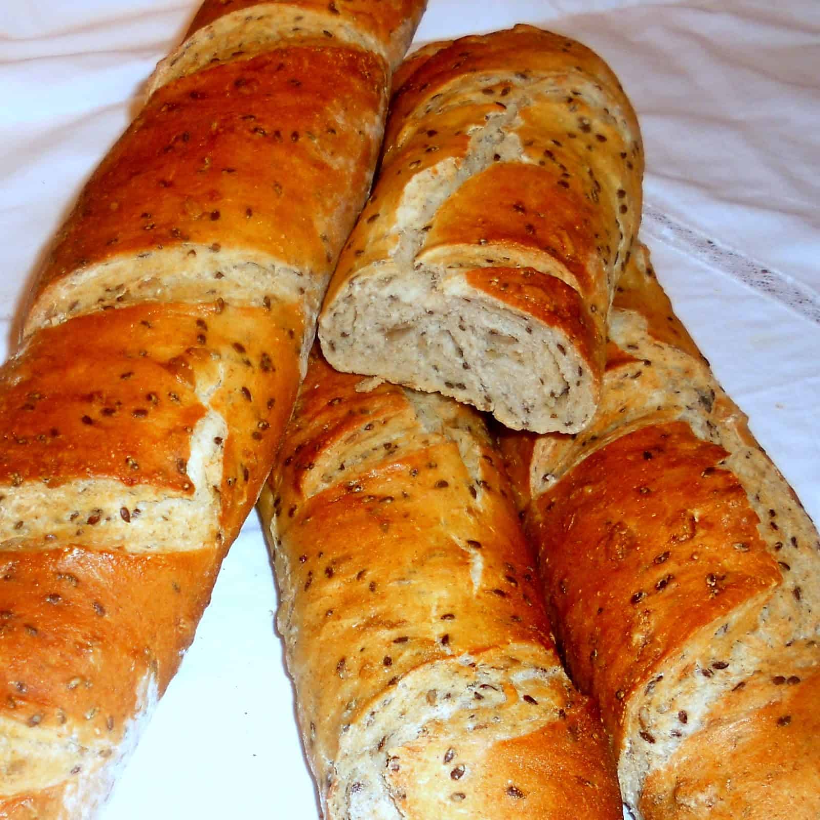 Pasadas las 2 ó 3 hs, no es preciso que sea un tiempo muy exacto, agregamos la levadura desgranada y luego la harina de centeno, la miel, la sal y las semillas. Mezclamos hasta integrar, volcamos sobre una superficie de trabajo ligeramente enharinada y amasamos durante unos 15´ hasta obtener una masa liviana, suave y elástica.