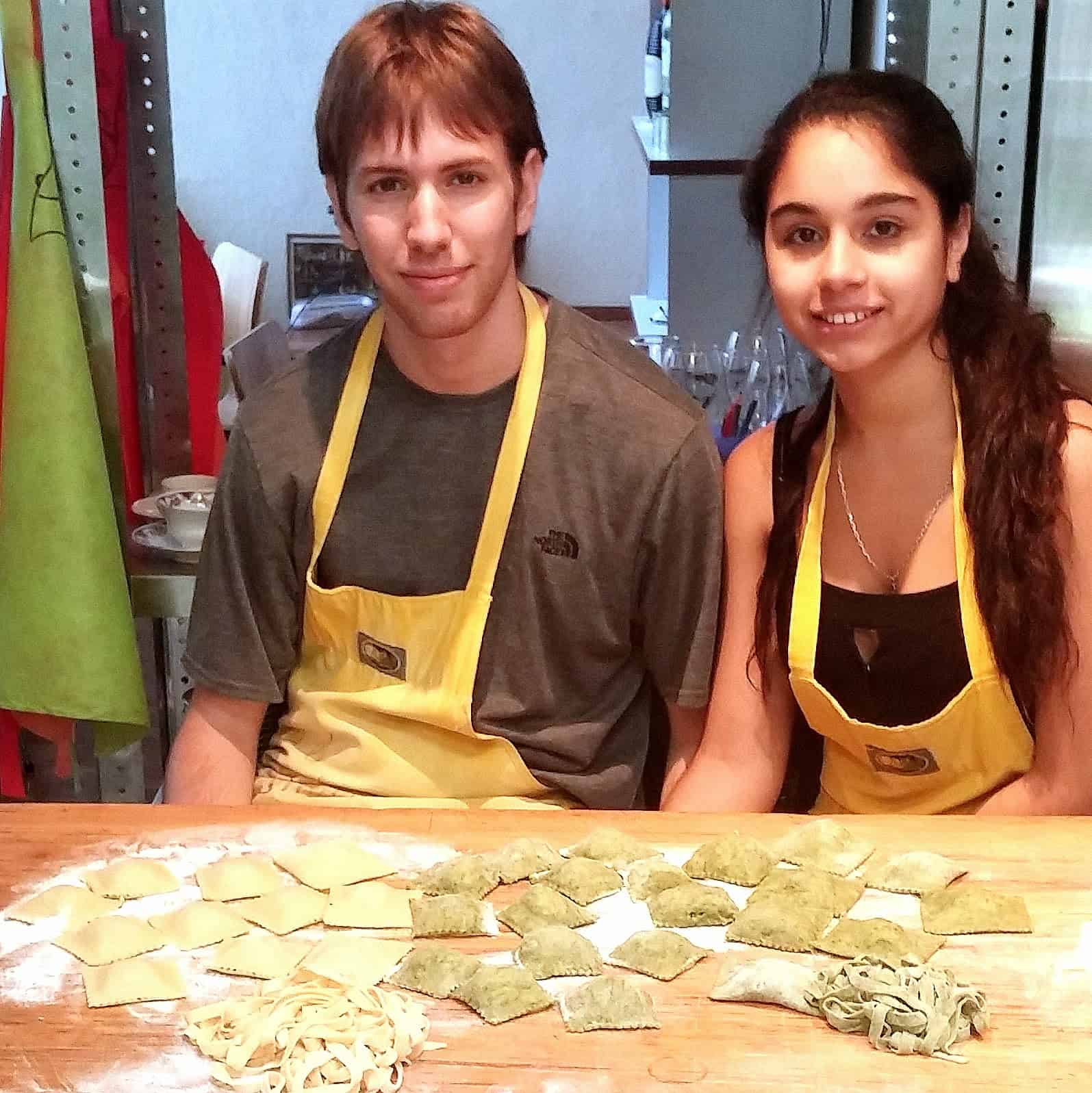 En la Clase de Cocina + Almuerzo de ayer con Cecilia y Agustín preparamos como principal estos raviolones que resultaron riquísimos. Los chicos no tenían ninguna experiencia en pastas por lo cual preparamos una masa de pasta básica y otra con espinacas, de lo cual resultaron ravioles de dos colores que compusieron un plato lindísimo. La receta, para 4 porciones (como no es época de espinacas frescas trabajamos con las congeladas):