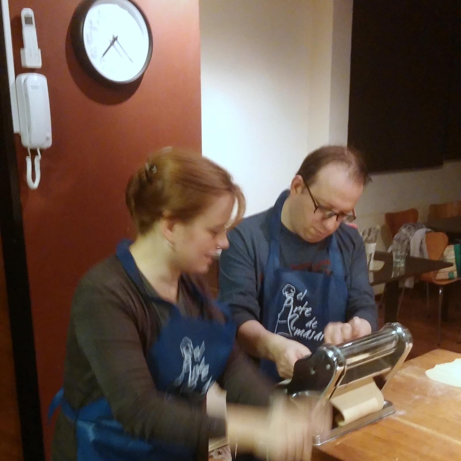 Retiramos la pasta al dente, no más de 2´ y volcamos dentro de la sartén un poco del agua de la cocción.