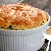 En una cacerola chica derretimos la manteca, incorporamos la harina y cuando se forma una pasta (roux) retiramos del fuego, incorporamos la leche fría y siempre mezclando retornamos al fuego continuando la cocción hasta lograr una salsa blanca espesa. Apagamos el fuego, incorporamos las yemas, el gruyere, y las espinacas, condimentamos con sal (poca, el queso ya es salado), pimienta y nuez moscada y revolvemos.