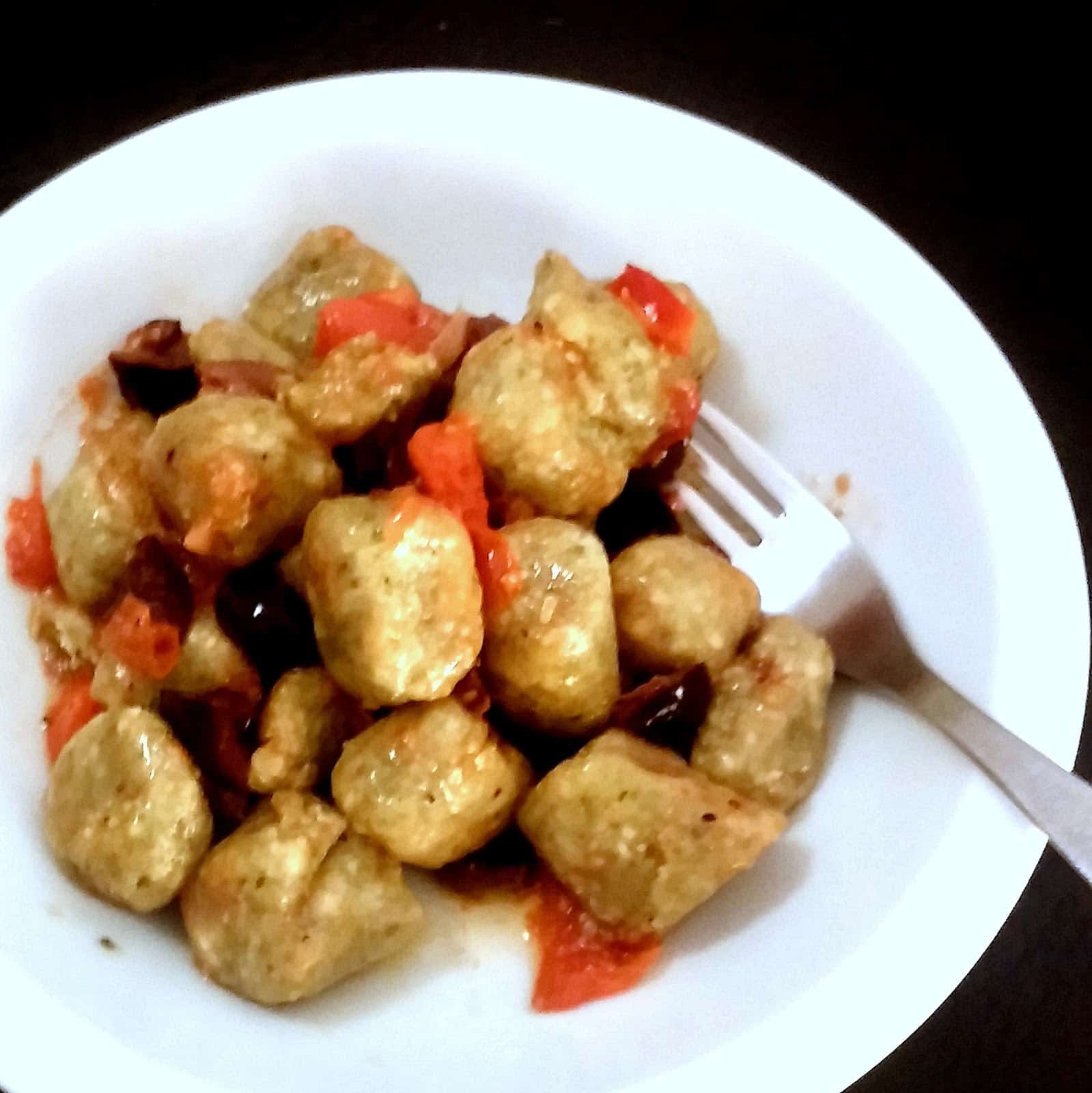 Una vez el agua rompió a hervir salamos, volcamos dentro los ñoquis y apenas van subiendo a la superficie retiramos, escurrimos bien y volcamos dentro de la sartén con la salsa.
