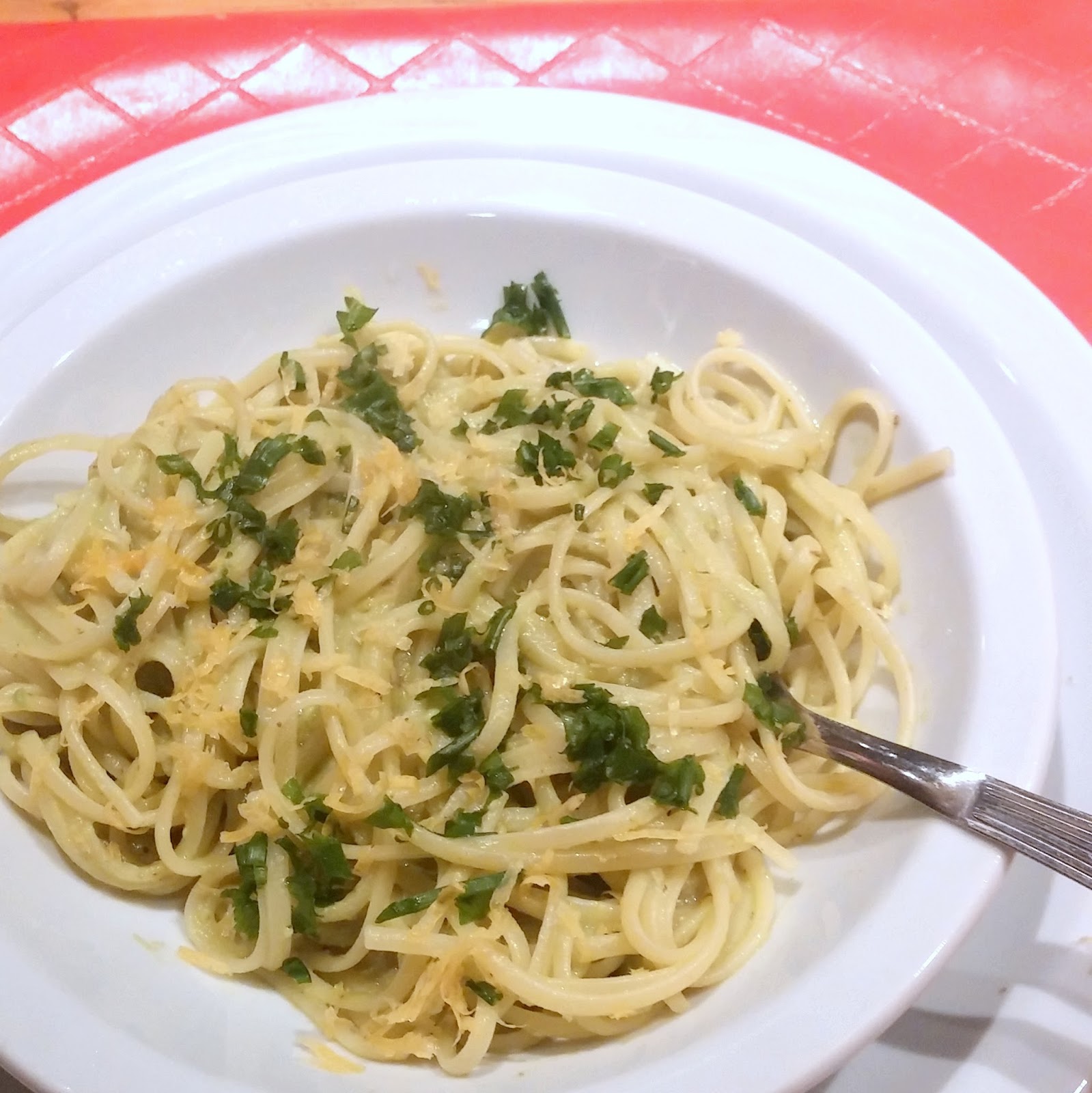 Servimos en platos preferentemente precalentados floreando con ciboulette picado, ralladura de limón y algún picante. No recomiendo queso rallado.