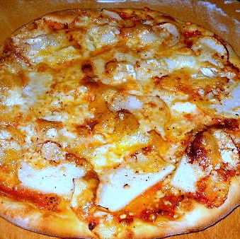 A la hora del servicio distribuimos sobre la pizza las rodajas de pera y por encima el queso brie y, si les gusta picante, abundante peperoncino, le va muy bien..