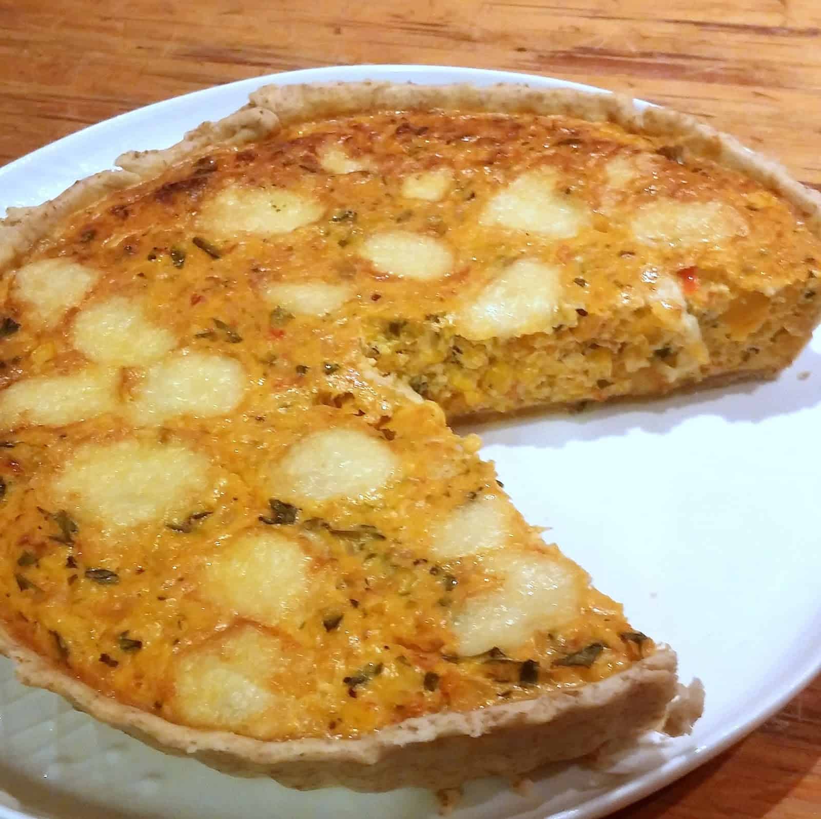 En una sartén grande salteamos las cebollas y el morrón a fuego bajo por unos 10′ mezclando cada tanto. Incorporamos la calabaza y el choclo, revolvemos, agregamos el vino blanco y continuamos la cocción a fuego suave por otros 10′. Dejamos entibiar, volcamos sobre un bol grande, agregamos el perejil, el orégano, la parte verde del verdeo y el azúcar y mezclamos con el yogur y el huevo previamente combinados entre sí. Condimentamos con sal, pimienta y abundante peperoncino.
