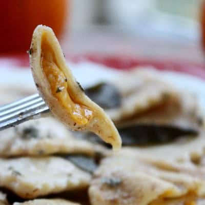 Antes de volcar la pasta dentro del agua hirviendo, en una sartén grande derretimos la manteca a fuego suave y esperamos unos minutos a que comience a oscurecerse; agregamos entonces las hojas de salvia y luego de 1’apagamos el fuego.