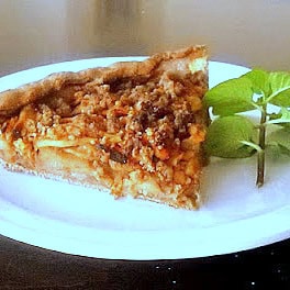 Retiramos la masa de la heladera, la estiramos bien delgada y forramos una tartera previamente pincelada con manteca o aceite. Distribuimos por encima las rodajas de manzana y por sobre estas el crumble. Con el canto de un cuchillo cortamos los excedentes de masa.