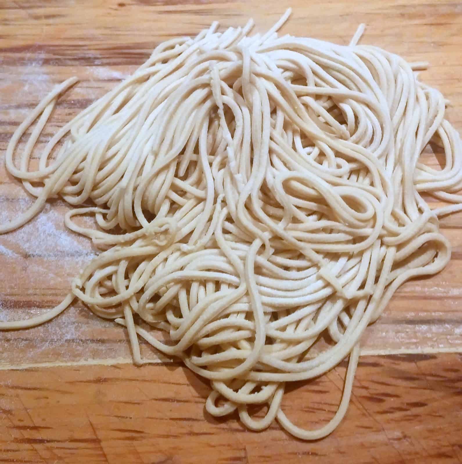 Una vez reposada la masa estiramos hasta el punto 7 de la máquina y cortamos en el punto 4 de modo