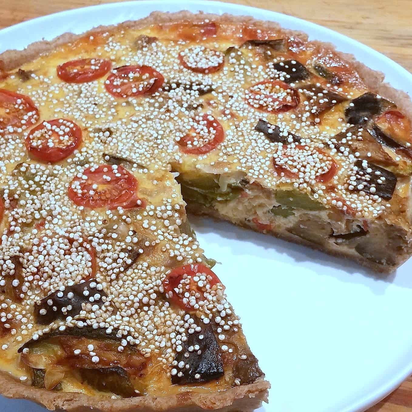 En una sartén grande salteamos la cebolla, el morrón y los ajos con el aceite de oliva y una pizca de sal; una vez transparentaron agregamos las berenjenas y los zapallitos, revolvemos, y luego de 2´ reducimos el fuego a mínimo, incorporamos el orégano y el ají molido, salpimentamos, tapamos y cocinamos por unos 10´mezclando cada tanto; las berenjenas deberán quedar tiernas pero firmes. Apagamos el fuego, dejamos entibiar y mezclamos con los huevos y el yogur previamente batidos. Los huevos los batimos previamente y reservamos un poco para pincelar la base de la tarta
