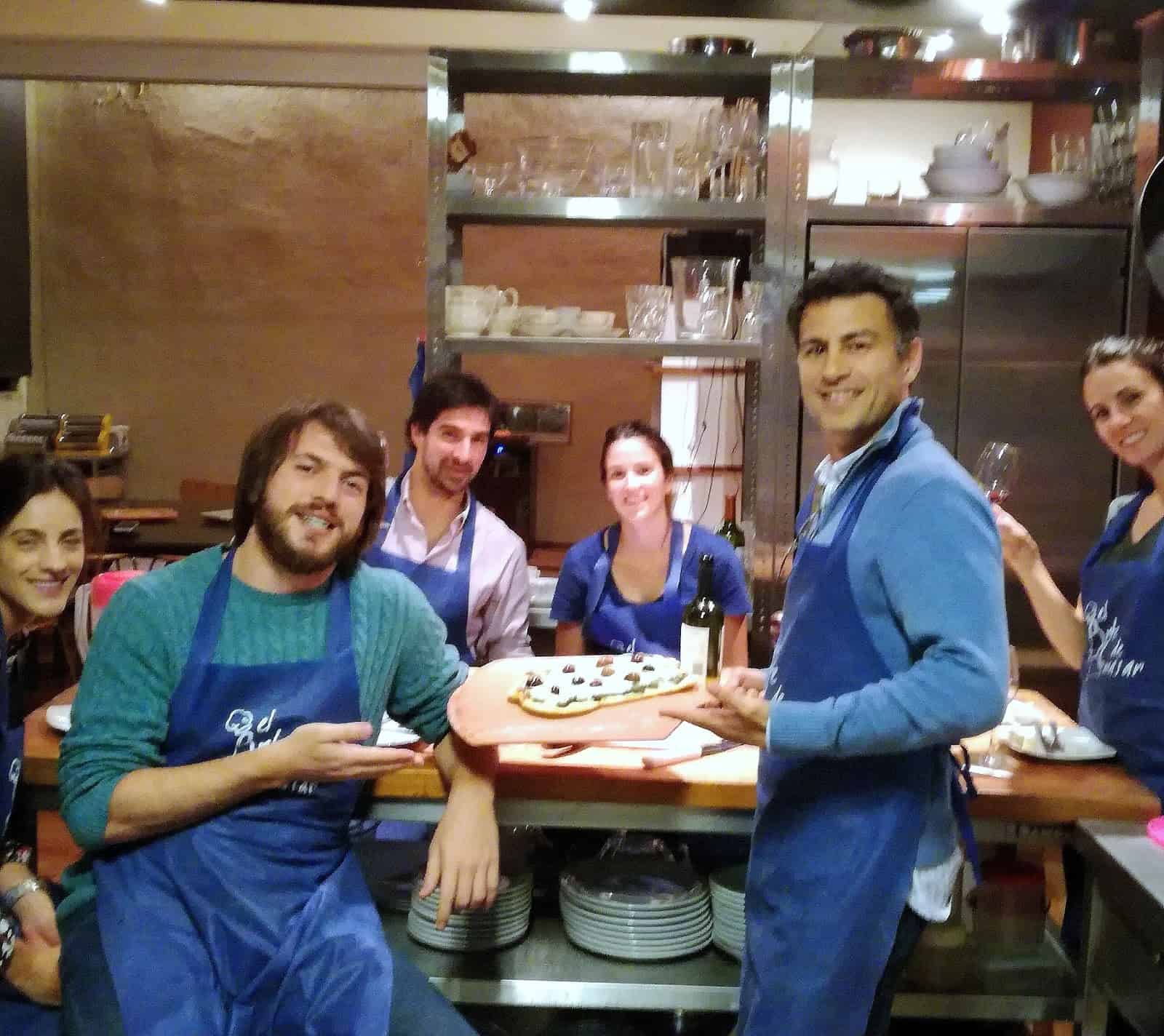 Pincelamos con la salsa de tomates y con una pala vamos depositando las pizzas de inmediato sobre la piedra del horno muy caliente y a máxima temperatura. La idea es apenas marcarlas y así facilitarnos el trabajo al recibir a los comensales.