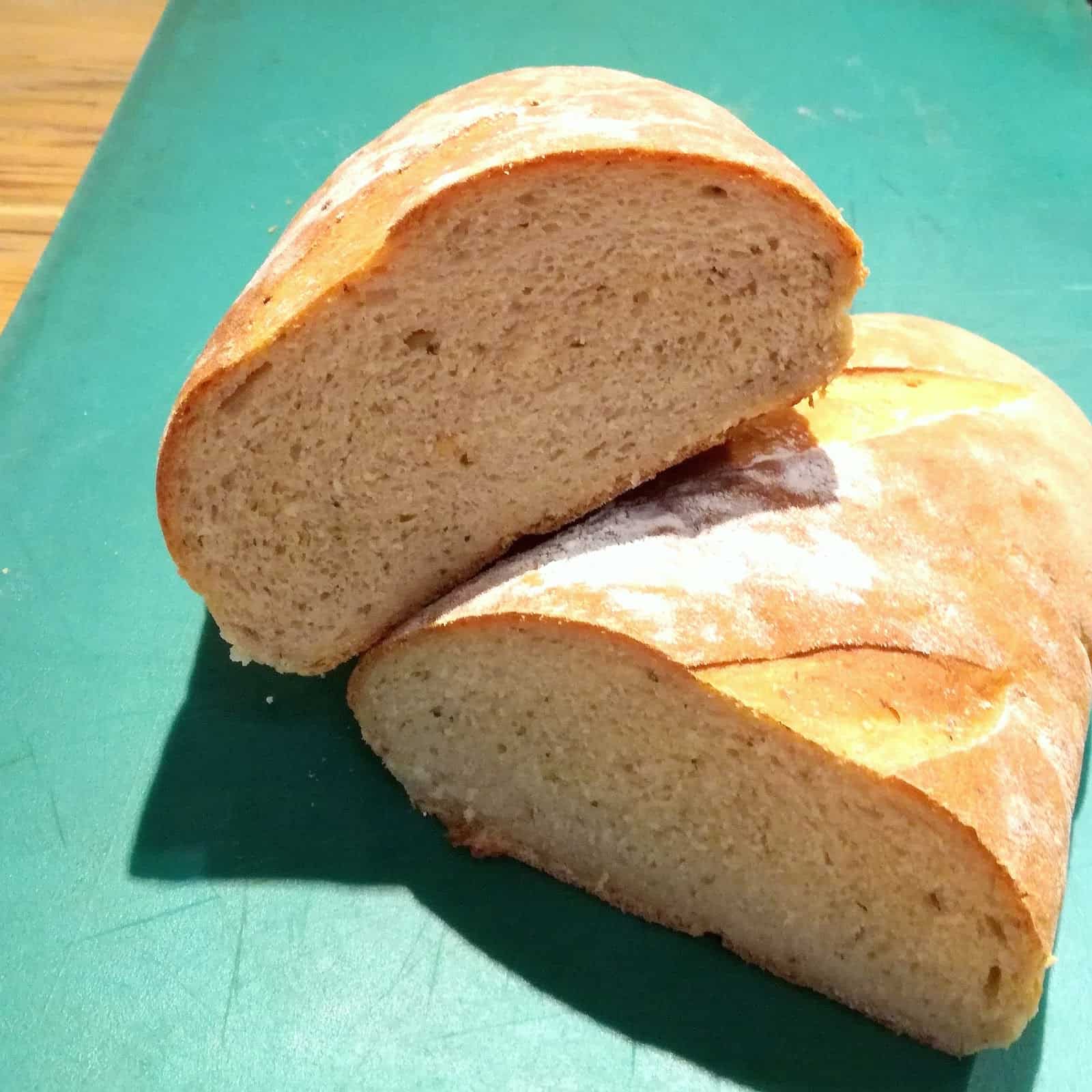 Horneamos en horno prehumidificado y a 200* por unos 30´; el pan deberá verse tostado y la base sonar hueca.