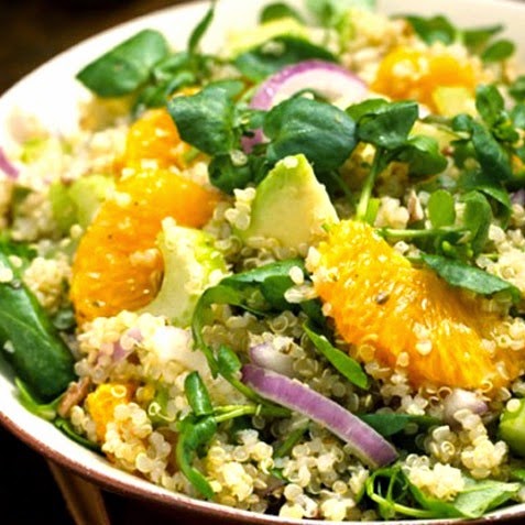 Una buenísima, colorida y nutritiva ensalada invernal, tomada de “ivillage” Para 4 comensales: – 250 g de granos de quinoa–