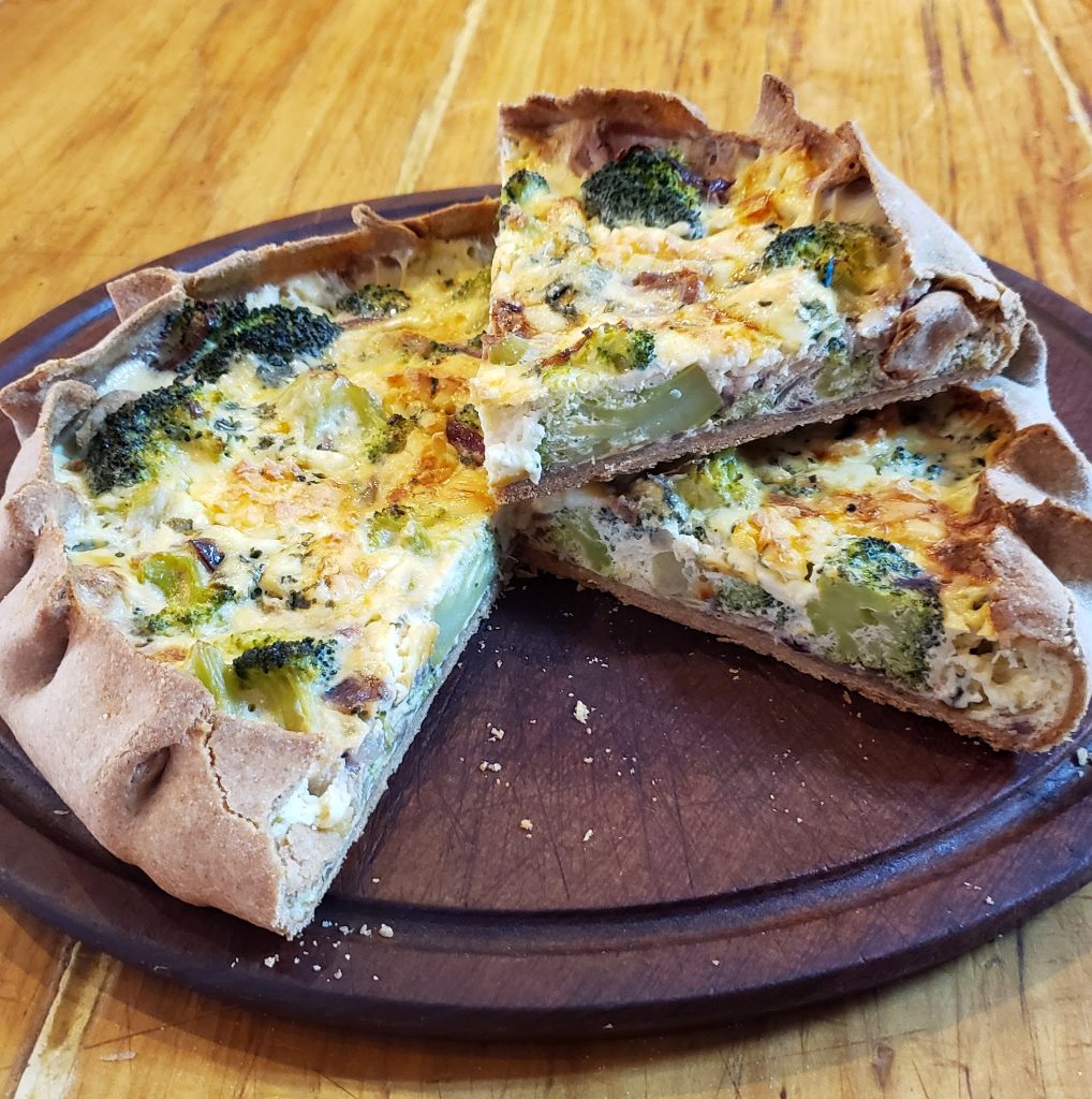 Una tarda colorida, sabrosa, nutritiva y fácil de preparar. La receta, para una tartera de 25 cms de diámetro en