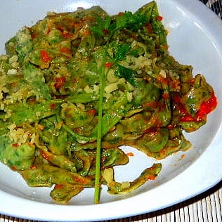 Es una pasta colorida y nuy sabrosa; a mi amigo y destacado economista Aquiles AA (tan destacado que casi no